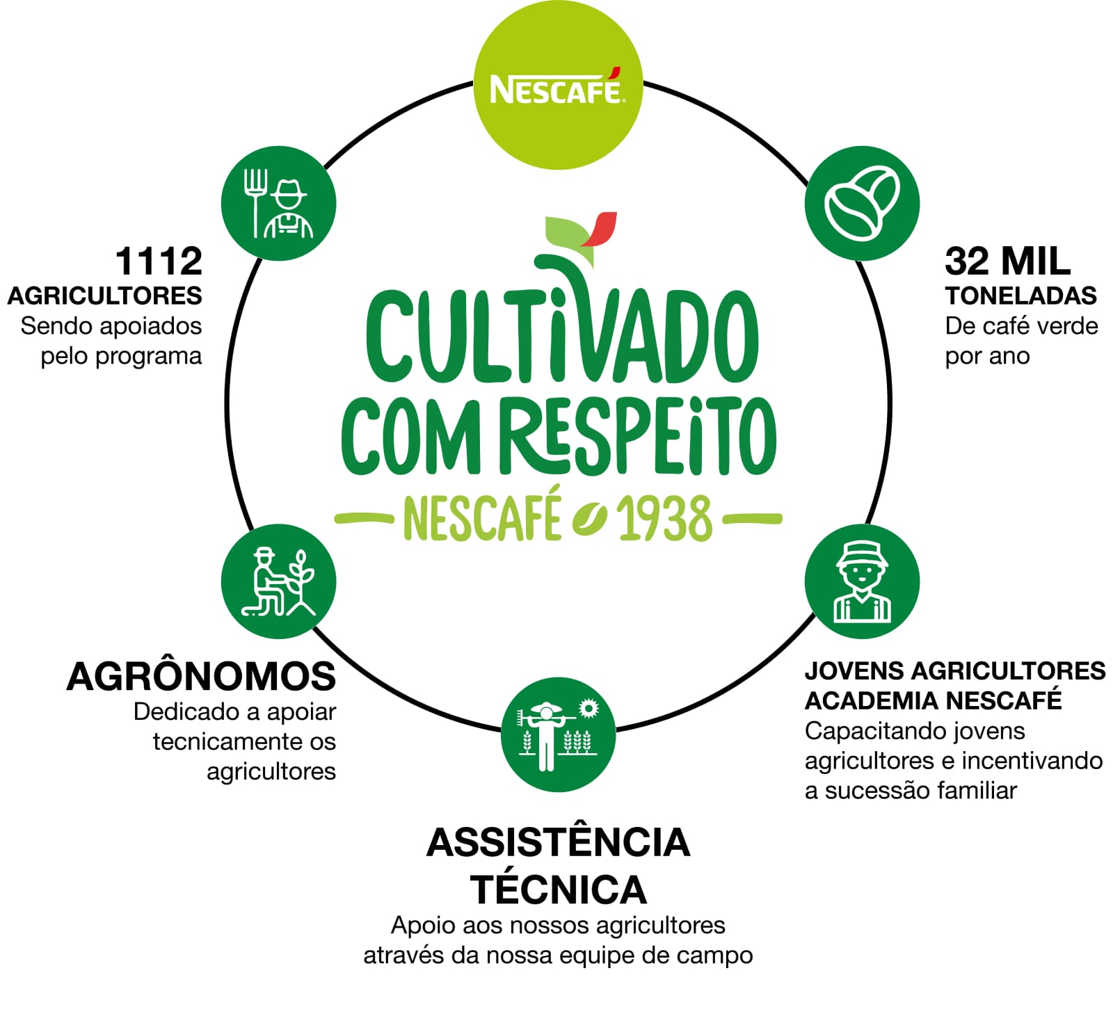 Uma a cada sete xícaras de café consumidas no planeta hoje é de Nescafé. E, como a maior marca do mundo nesse segmento, assumimos a responsabilidade de liderar sua jornada sustentável. Por isso, em 2011, nasceu o Cultivado com Respeito – ou Grown Respectfully, como é conhecido internacionalmente –, o maior programa de sustentabilidade na cafeicultura. A iniciativa, embasada por três pilares de atuação, Gente, Natureza e Conhecimento, tem como objetivo transformar de maneira cuidadosa e perene a cadeia produtiva de ponta a ponta.